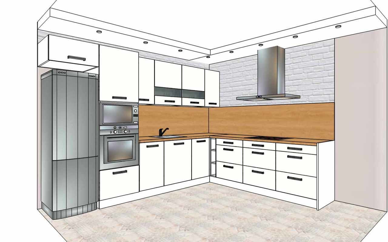 Подсказка: Будет здорово, если вы составите список нужной техники, габаритной утвари и посуды, а также особенностей вроде полки для кулинарных книг, бутылочницы, модуля для хранения совка и веника и прочего.