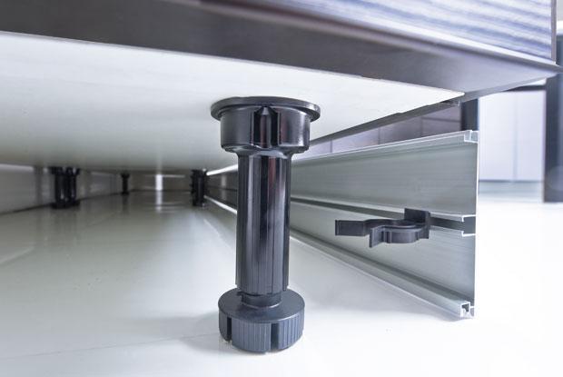 Мебельный щит идеально подходит под цвет столешницы, стык между ними закрывается уплотнительным плинтусом, что украшает изделие и повышает его эксплуатационные характеристики.